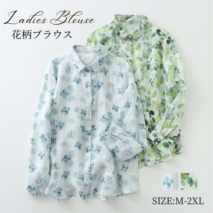 品よく可愛い花柄ブラウス♪ シャツブラウス レディース シンプル 上品 着回し コットンリネン 柔らかい シンプル 大きいサイズ