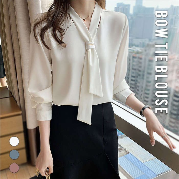 3カラー選べ ボウタイブラウス ホワイト 白 パープル ブルー ....2 ♪レディースファッション トップス シャツ ブラウス