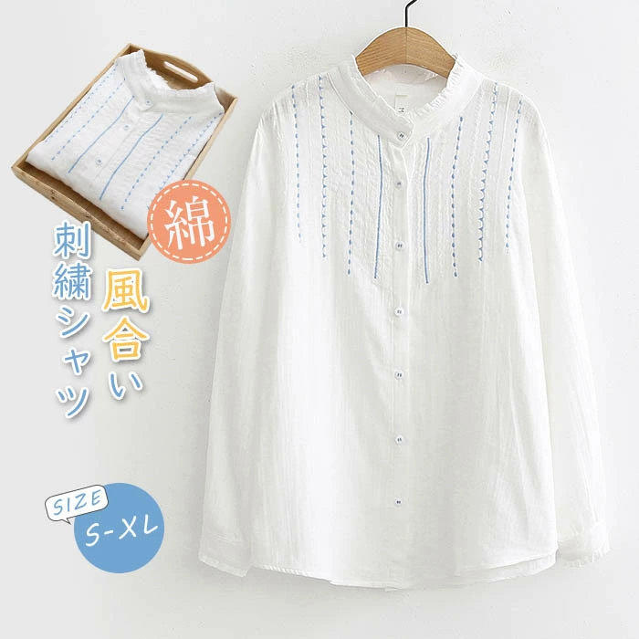 刺繍 ブラウス レディース 長袖 シャツ レディースファッション トップス シャツ ブラウス