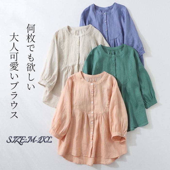 リネンブラウス レディース かわいい 可愛い トップス プルオーバー 前開き カジュアル シャツ ブラウス 体型カバー ゆったり 通勤
