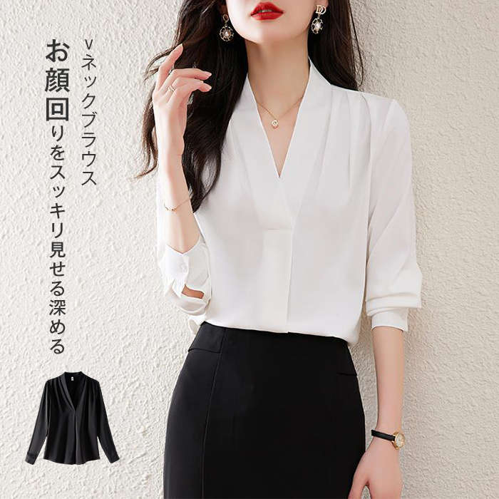 ブラウス フォーマル 長袖 白 Vネック 大きいサイズ シャツ レディース おしゃれ きれいめ トップス 美フォルム ゆるシャツ 通勤 オフィス レディース 上品 トレンド シフォンジョーゼット シン