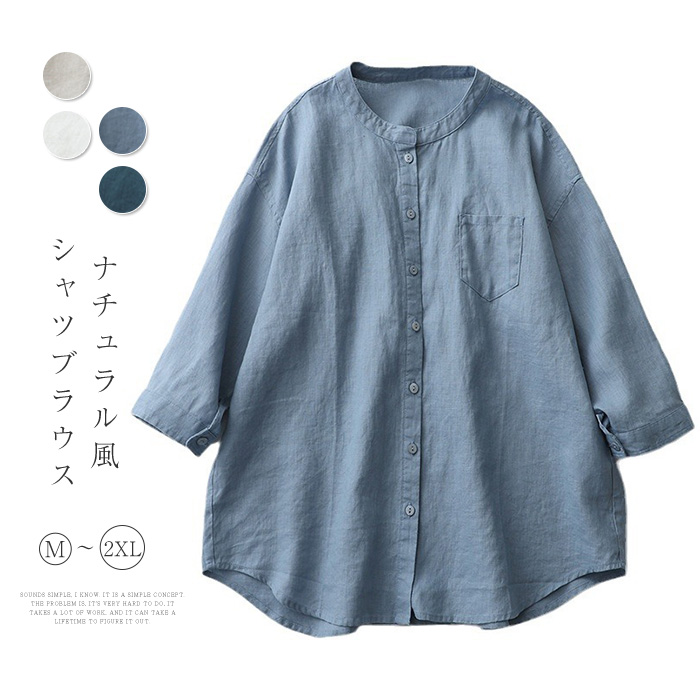 ブラウス 綿麻シャツ 七分袖シャツ 無地 スタンドカラー リネン 薄手 トップスレディースファッション トップス シャツ ブラウス