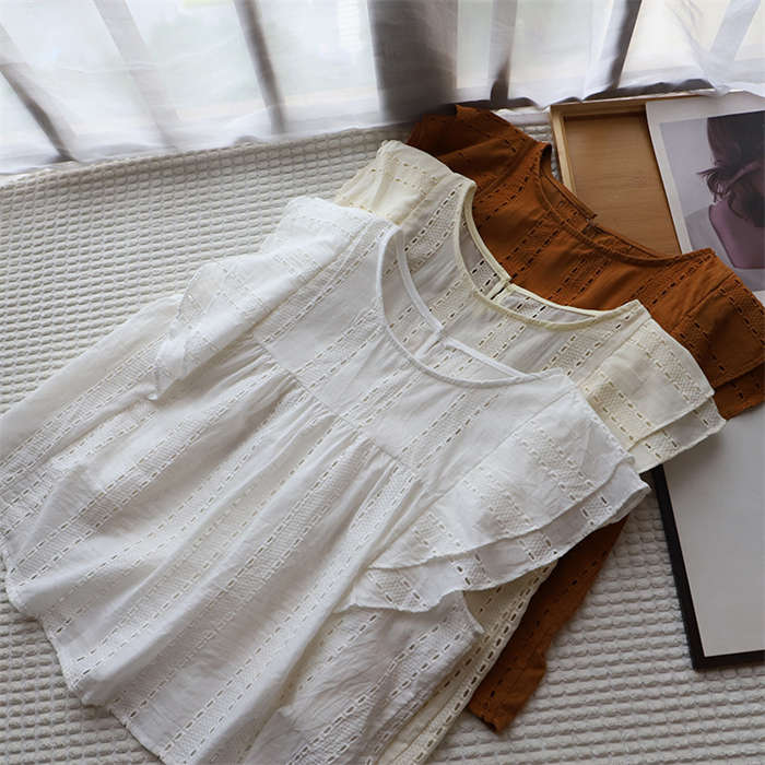 シャツブラウス 半袖 レディース ガーゼシャツ デザイン ベーシック コットンシャツ 柔らかい 着心地よい かわいい