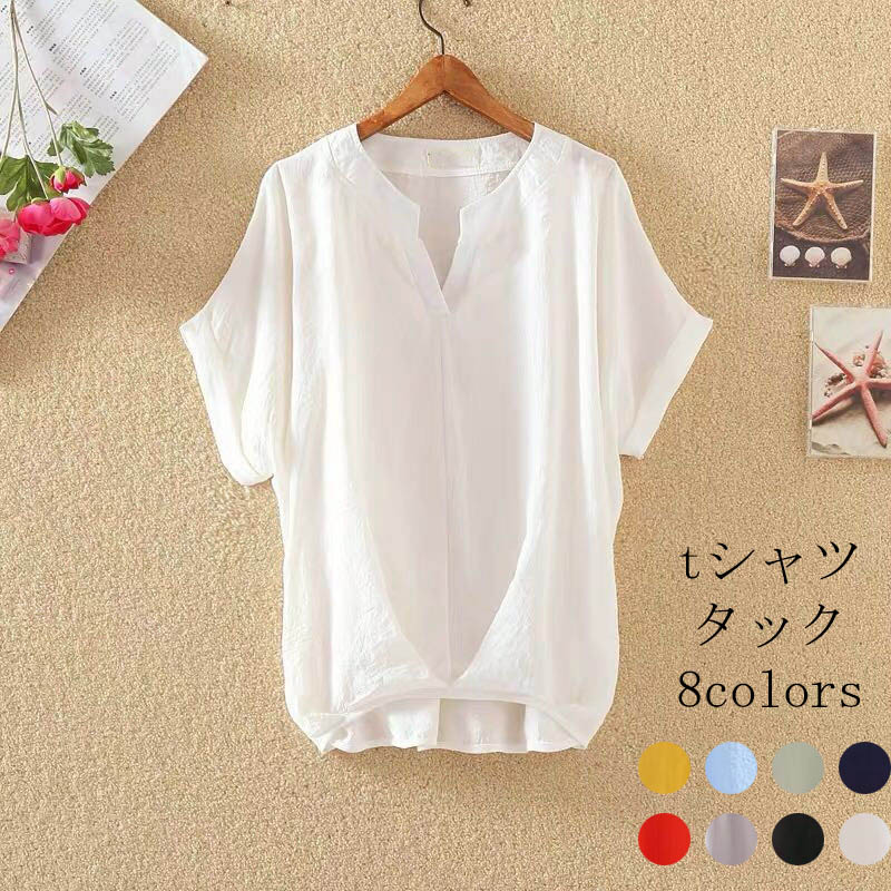 夏シャツ Tシャツ ブラウス 夏 夏服 綿 薄手 プルオーバー レディース トップス 半袖 コーデ 体型オーバー オシャレ きれいめ カジュアル風 ゆったり