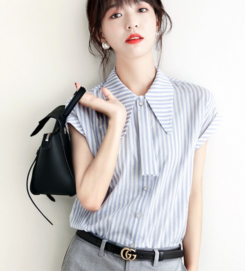 レディース シャツ半袖着痩せ お洒落 上品 大人 シンプル 通勤 トップス OL ストライプ柄 カーディガン 夏 カジュアル シルエット お洒落
