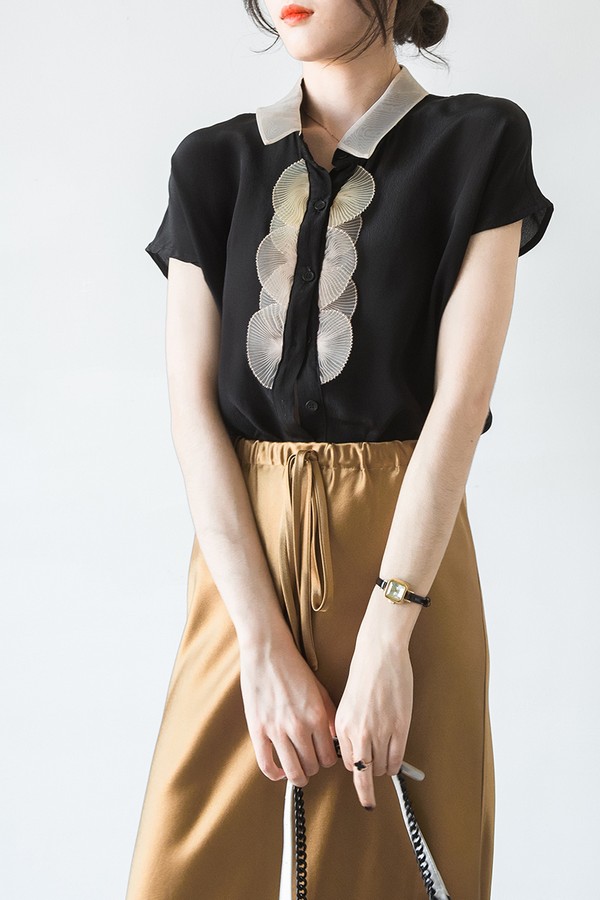 シアースリーブ ドッキングシャツ ボウタイシャツブラウス