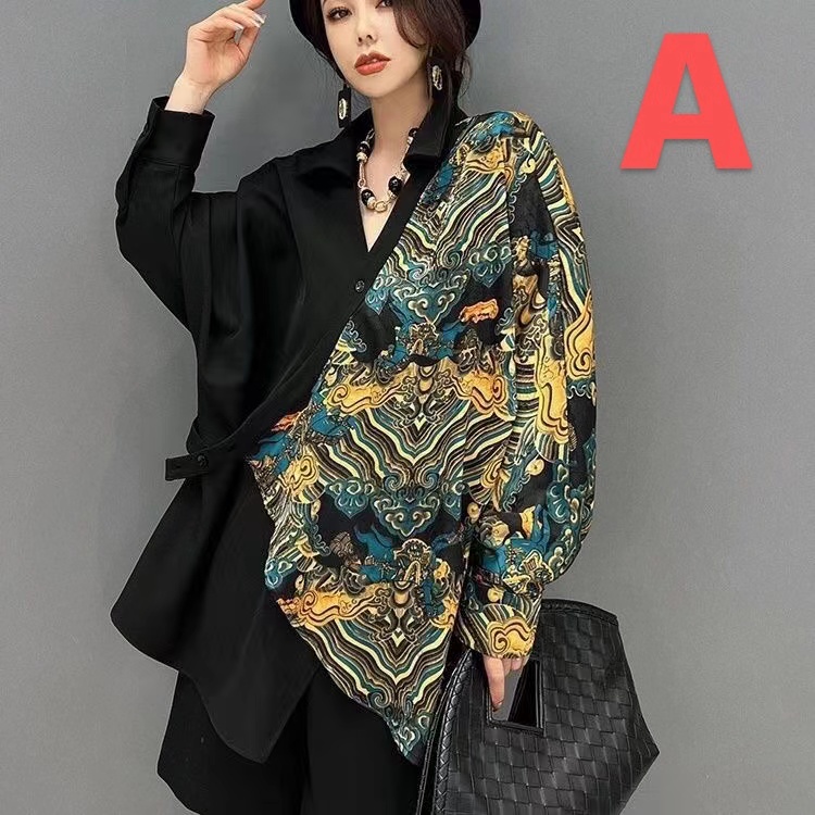 チャイナ風シャツ お洒落 無地 長袖 裾のアンシメトリー 肌触りが良くレディースファッション トップス シャツ ブラウス