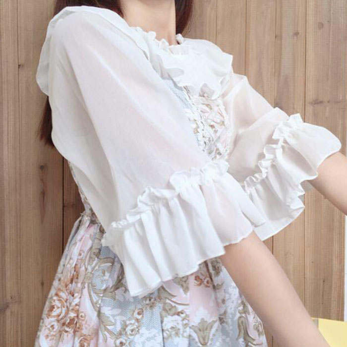 シフォンブラウス レディース ブラウス 7分袖 トップス シフォン 2wayフリル袖フレア 袖フリル シースルー レイヤード ゴスロリ ロリータ お嬢様 お姫様 可愛い ロリータファッション ゴシック