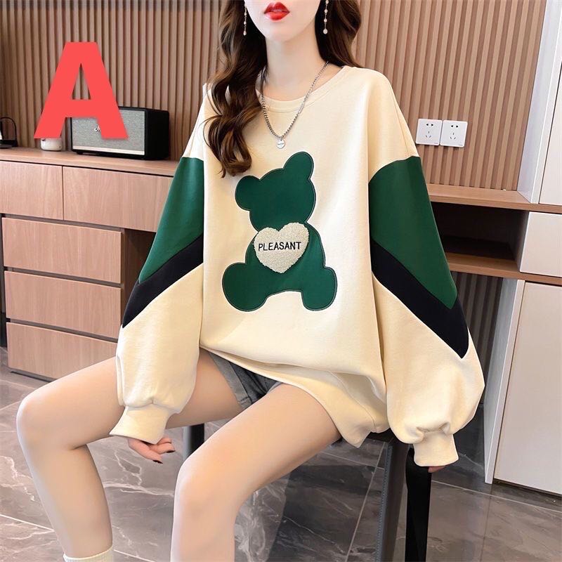 レディース トレーナー 春秋 トップス 長袖 薄手 クマ柄 英文字 丸首 ゆったり 可愛い ホワイト ブラック パープル 2 028