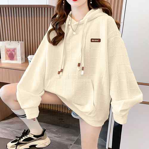 体型カバートップス レディース ゆったり 長袖プルオーバー おしゃれ 型押しロング丈スウェット カジュアル大人可愛い春秋 エンボス加工お洒落 アメカジスウェット フロントポケット服