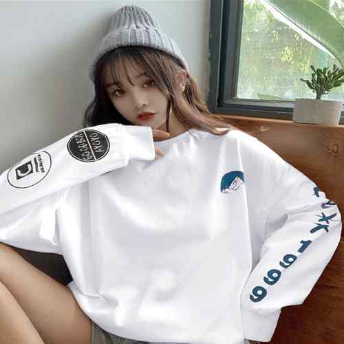 レディース トレーナー 春秋 トップス 薄手 長袖 英文字 刺 丸首 綿 可愛い ホワイト レッド M L XL 2XL SLUA026