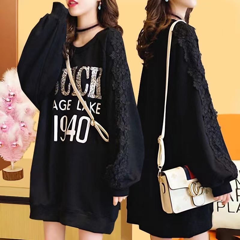 トレーナー レディース 春秋 ゆったり レース 英文字 トップス カジュアル 通勤 可愛い 丸首 長袖 ブラック ホワイト M L XL 2XL SLUA314