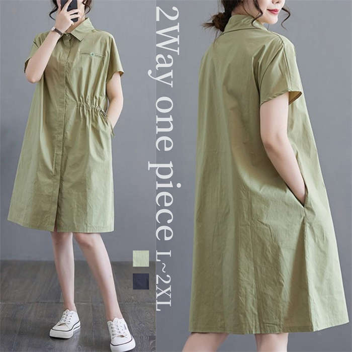 大人かわいい 2way チュニックワンピース Shirt one-piece ♪レディースファッション チュニック