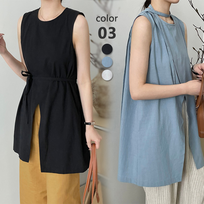 シャツ ワンピース ノースリーブ トップス タンクトップ シャツワンピース カットソー 薄手ポンチ 肩パット レディース 体型カバー 春 夏 秋