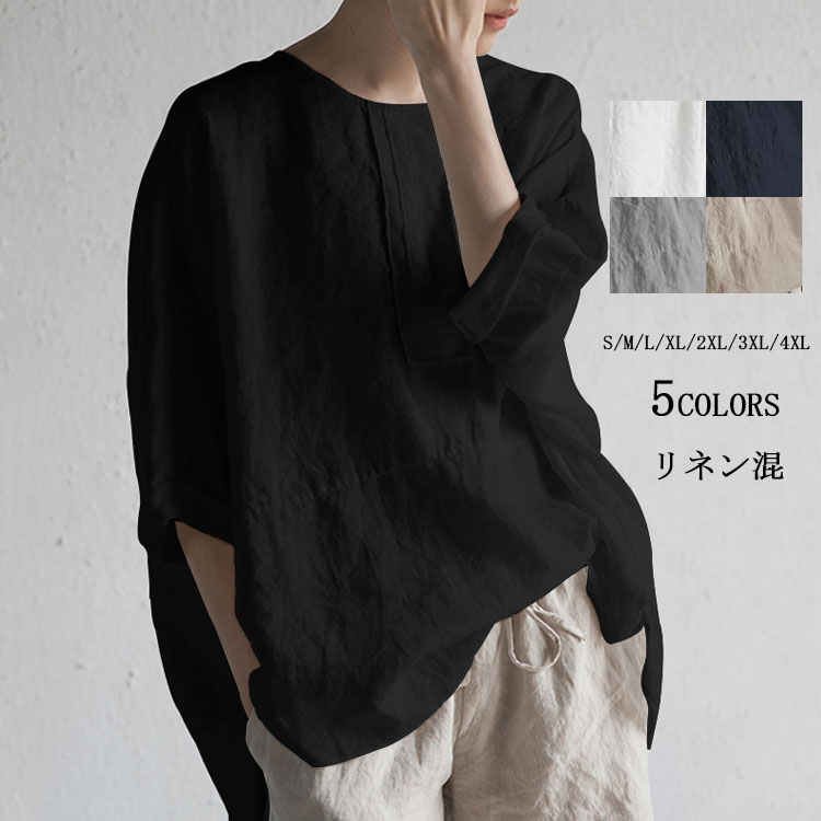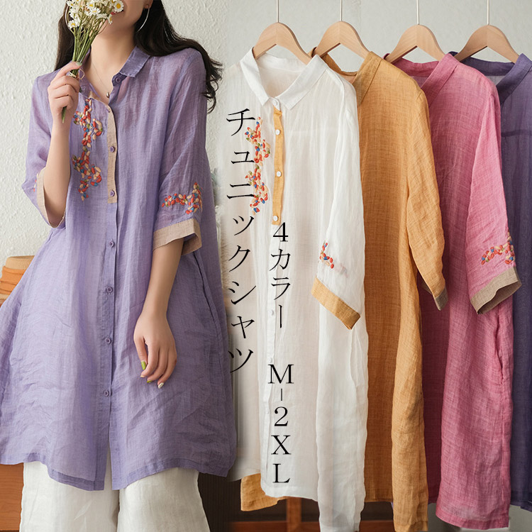 お尻までカバーできる大人可愛いチュニックシャツブラウス 綿麻 ロング 薄手 体型カバー 着痩せ ゆったり