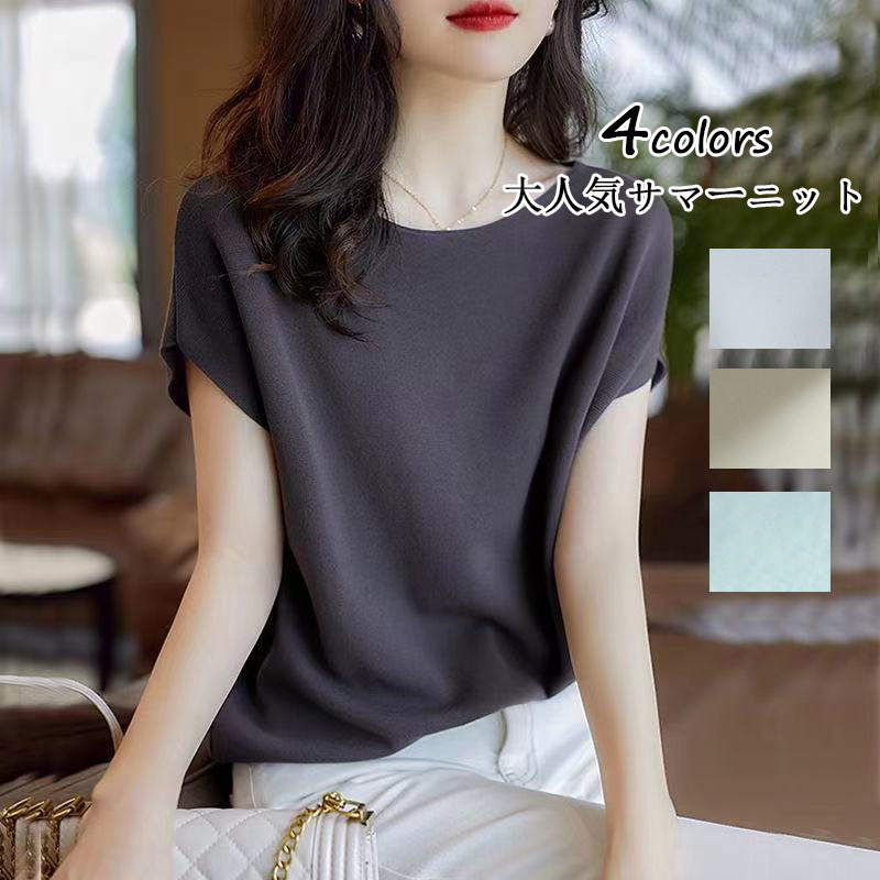 涼しいサマーニット 伸縮性 カジュアル フェミニン 通勤 通学 ゆったり ラフな着心地 お洒落 ガーリー 出かけ デート 大人気