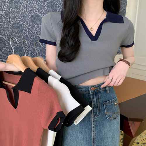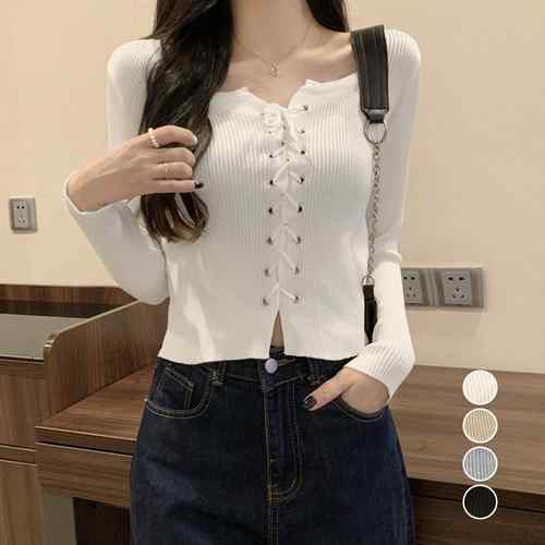 レースアップ プルオーバー 半袖クロップド丈 ニットカットソー ラウンドネック 韓国春夏コンパクトニットソー カジュアル 夏トップスきれいめ リブニットおしゃれ ニットシャツ無地