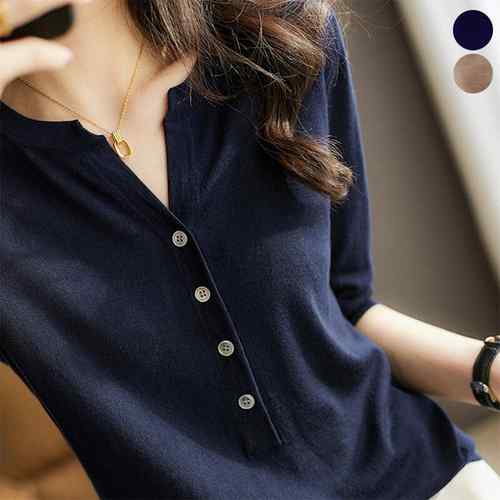 レディース ハーフボタン ニットカットソー 5分袖 薄手プルオーバー 大人可愛い 無地春秋夏トップス 半袖 着やせニット ニットソー 通勤服 オフィスカジュアル ニット シンプル
