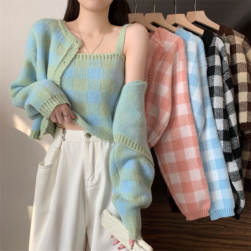 キャミソール+カーデガン セーター ニット 秋冬 セットアップ 通勤 トップスレディースファッション トップス ニット セーター セーター
