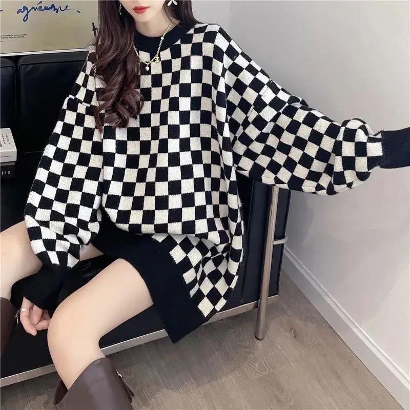 ニットセーター レディース 秋冬 秋物 冬物 ニット チェック柄 着痩せレディースファッション トップス ニット セーター セーター