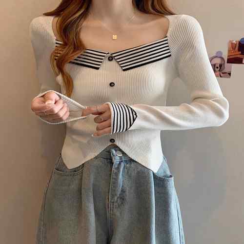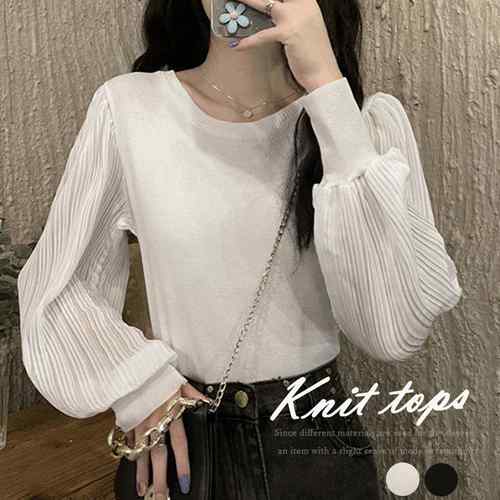ニットトップス レディース 異素材袖 ドッキングニット ショート丈 韓国風 ブラウス おしゃれ ブラウス 春秋 着やせ ニット 袖切替トップス