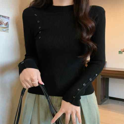 ニットプルオーバー ストレッチ 普段着 ニットウェア 大人秋服 カジュアルニットソー ハーフタートルネックニットインナー 長袖ニットトップス 着やせタイトニット 着回しニット韓国風