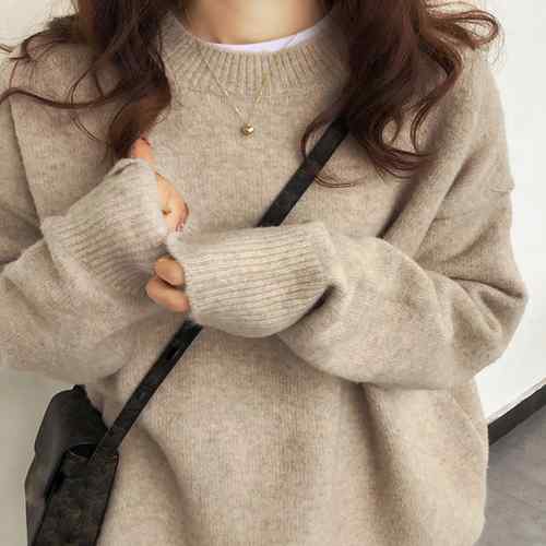 レディース ニットトップス 無地 プルオーバー ニットソー ゆったり オフィスカジュアル 通勤通学 大人可愛い きれいめ 新作人気韓国ニット 体型カバーニット クルーネックニット