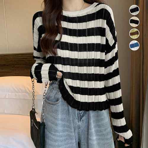 レディース カジュアル ニットウエア ラウンドネック 普段着 ニットプルオーバー おしゃれ 着回し ニットソー 韓国風 長袖ニットインナー 着やせトップス春秋 重ね着 リブニット