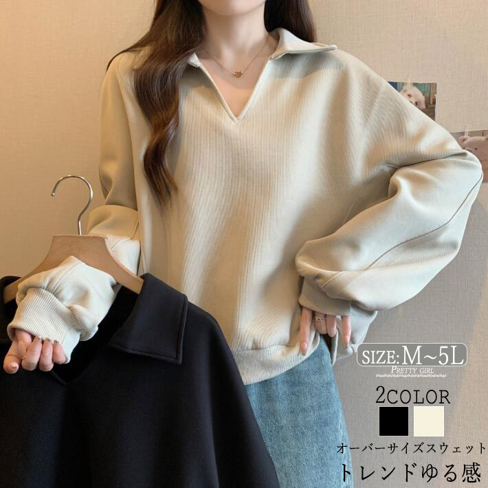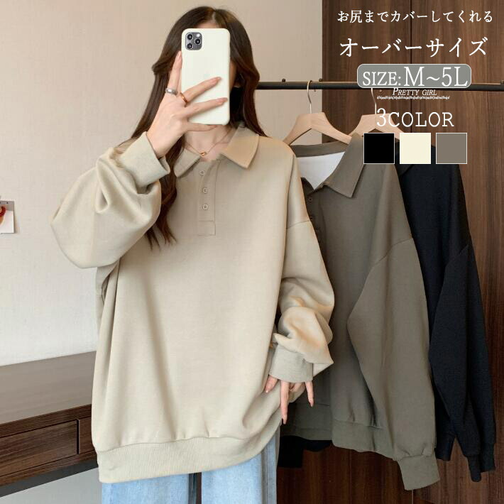 トレーナー レディース トップススウエットパーカーボリューム袖 ロングビッグシルエット長袖ゆったりカジュアル大きサイズ着痩せ 春秋冬M L 2L3L4L5L