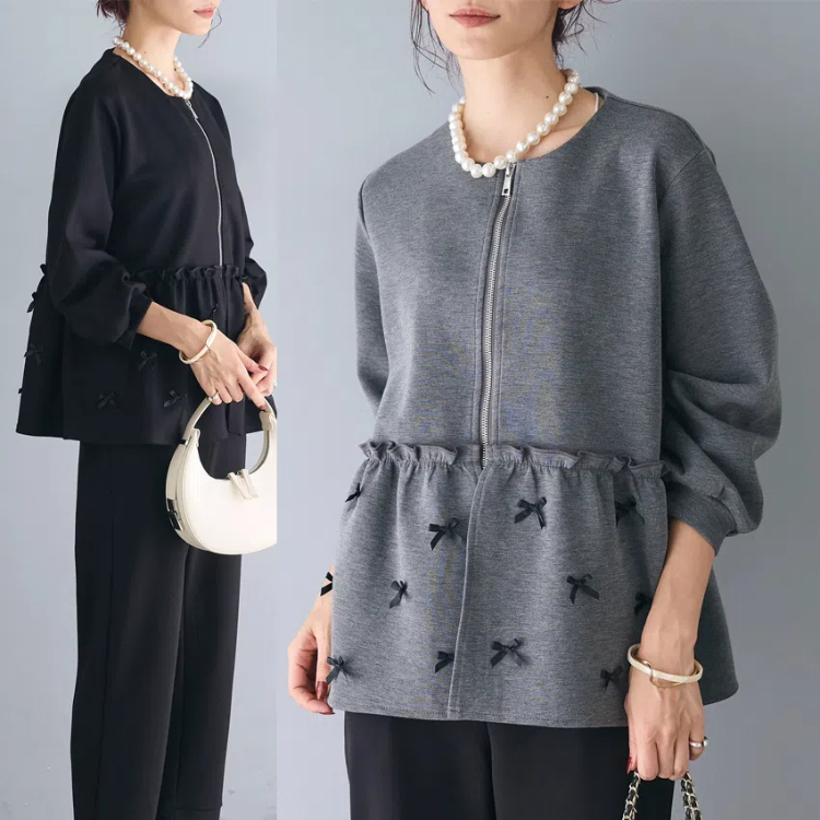 パーカー レディース おしゃれ きれいめ ジップアップ 前開き フラワー風 フリル 大人 可愛い 羽織り 長袖 ファスナ付き ジャケット アウター トップス 重ね着 春 秋 冬 20代 30代 40代