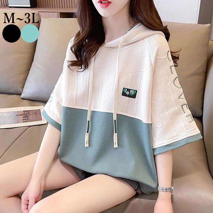 Tシャツ レディース 半袖パーカー プルオーバー フード付きトップス 春夏ロゴプリント プルオーバーパーカーロゴ 大きいサイズ夏ML2L3L