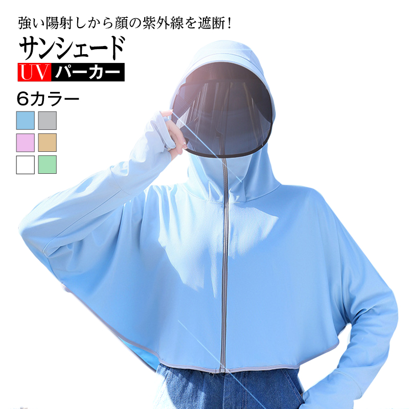 6カラー カット マスク付き サンシェードパーカー パーカー ひさし付き つば付き 紫外線対策 夏 長袖 春夏秋 花粉対策 ほこり 自転車 超薄手 軽量 速乾 防風 ラッシュガード