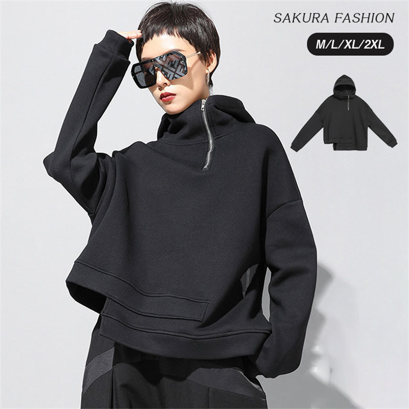 パーカー レディース トップス プルオーバー 上着 長袖 フード ビックサイズ 斜めジップ ゆったり 大きいサイズ 春秋冬 裏起毛パーカー