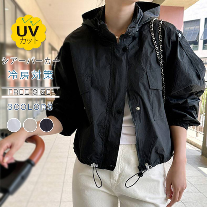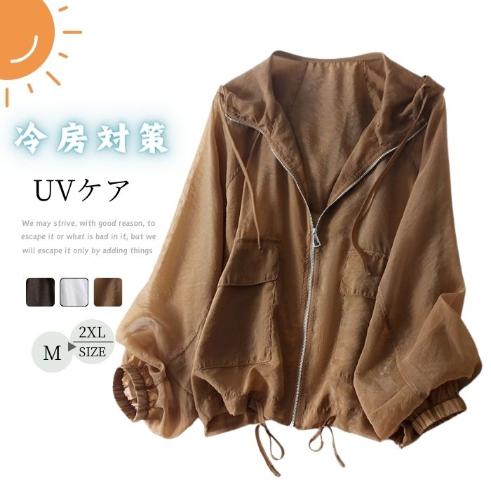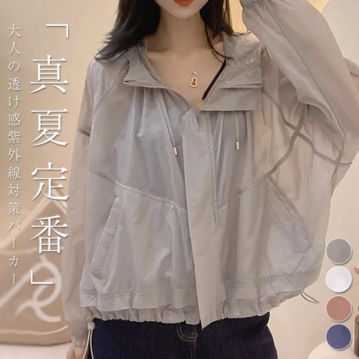 透け感のある女性らしいシースルーパーカー♪ お出かけやレジャー、リゾートの際の紫外線、冷房対策にもピッタリ