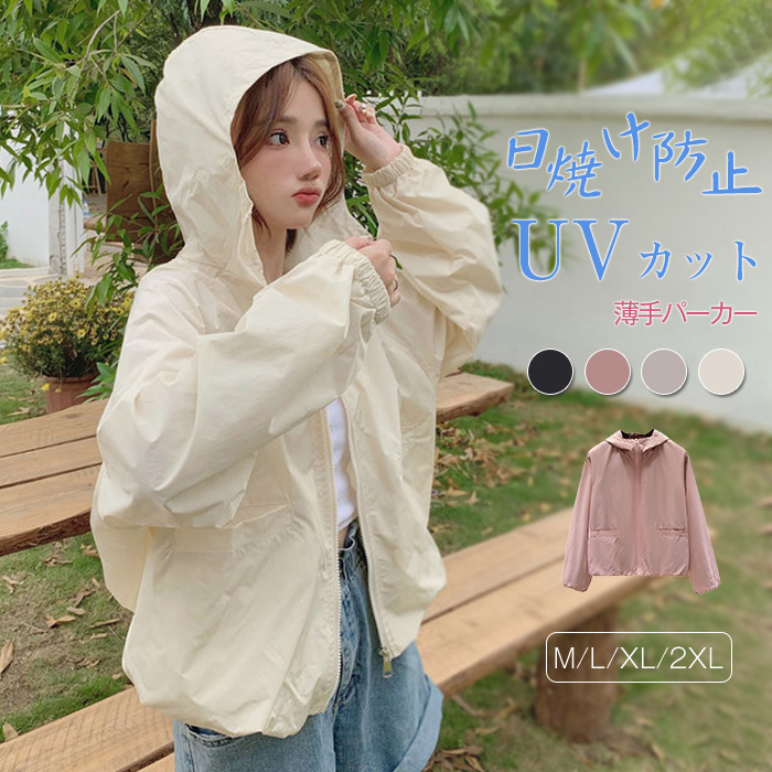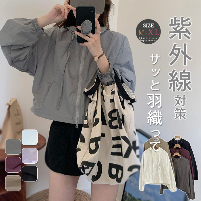 全6色 UVカットパーカー 大きいサイズ M~XL 春夏 春秋 アイボリー パーブル ブラック グレー ワインレッド ベージュ 黒 白 灰色 プレゼント 贈り物 ギフト 誕生日 母の日 ♪