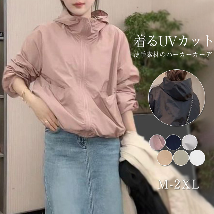 UVパーカー レディース 夏 薄手 uvカット パーカー カーディガン 長袖 羽織り 日焼け防止 紫外線対策 トップス 羽織り 冷房 UVケア 前開き 体型カバー ゆったり きれいめ カジュアル シン