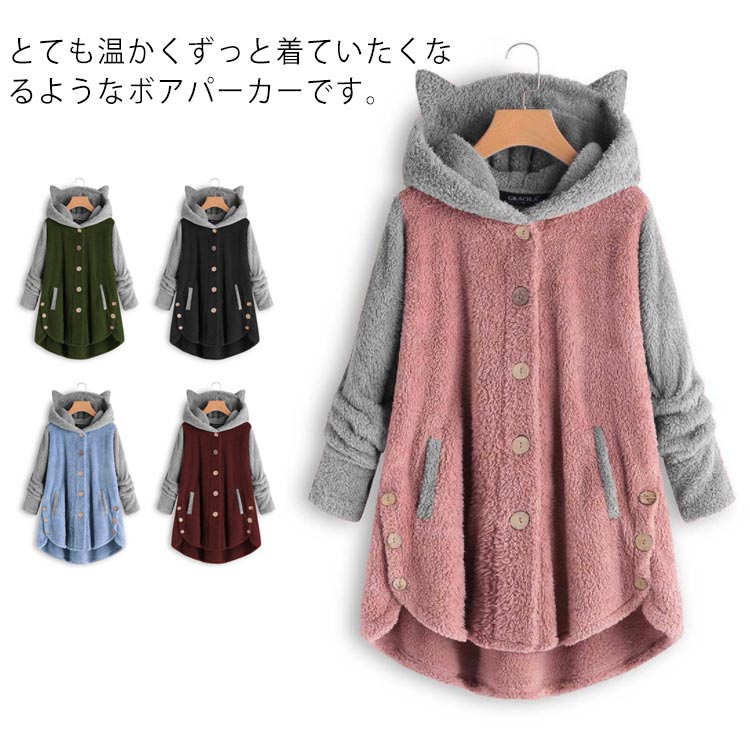 パーカー フード付き 大人可愛い オーバーサイズ 体型カバー 猫耳 ゆったり 暖かい 秋冬 防寒レディースファッション トップス パーカー