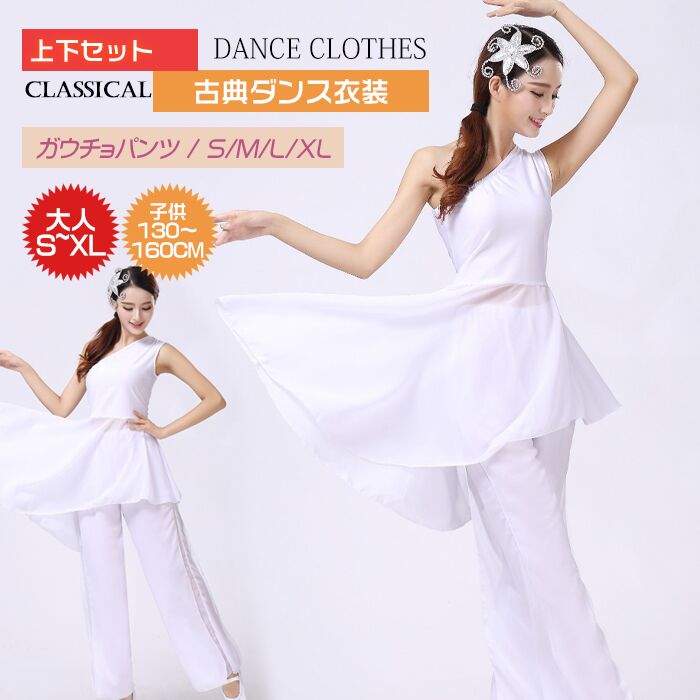 レディース 女の子 古典ダンス衣装 上下セット 2点セット シンプル 肩ワンピース ガウチョパンツ 子供 大人 レッスン 練習用