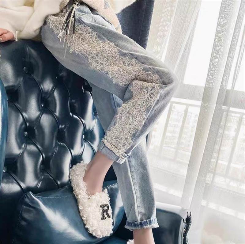 パンツ ボトムス レディース Gパン ストレート フェミニン ストリート レース 刺繍 ハイウエスト デニム ブルーデニム 薄手 かわいい 大人可愛い カジュアル おしゃれ かっこいい