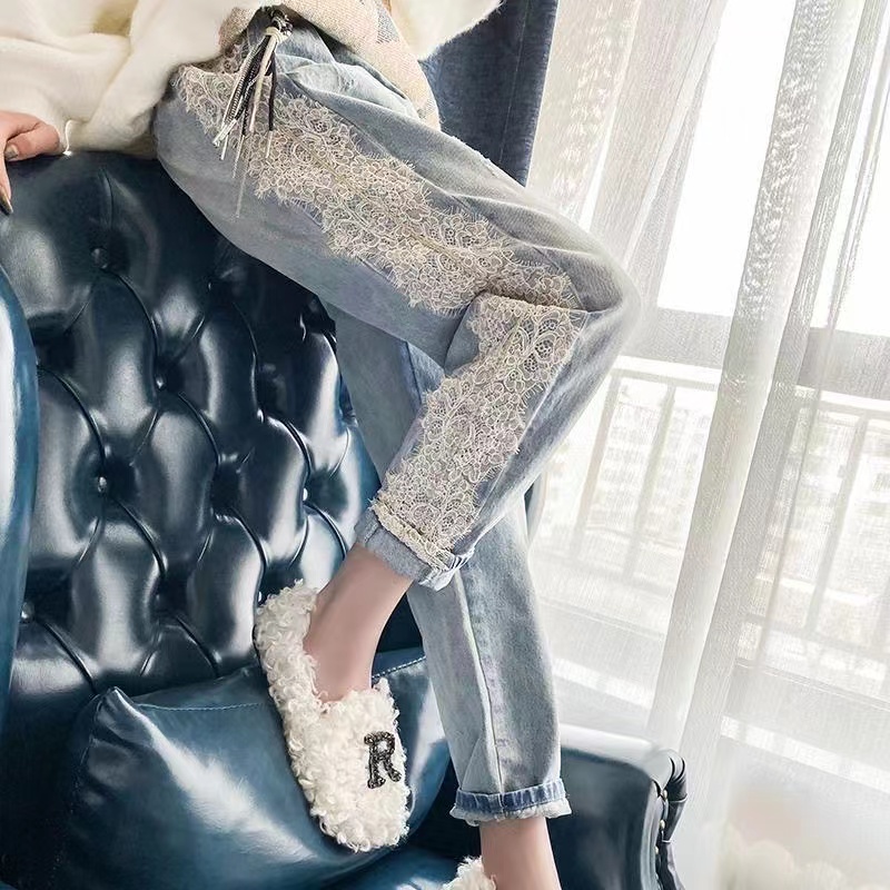 デニムパンツ レディース 春夏 ゆったり レース 可愛い 九分丈 通勤 カジュアル ジーンズ ボトムス 2 007