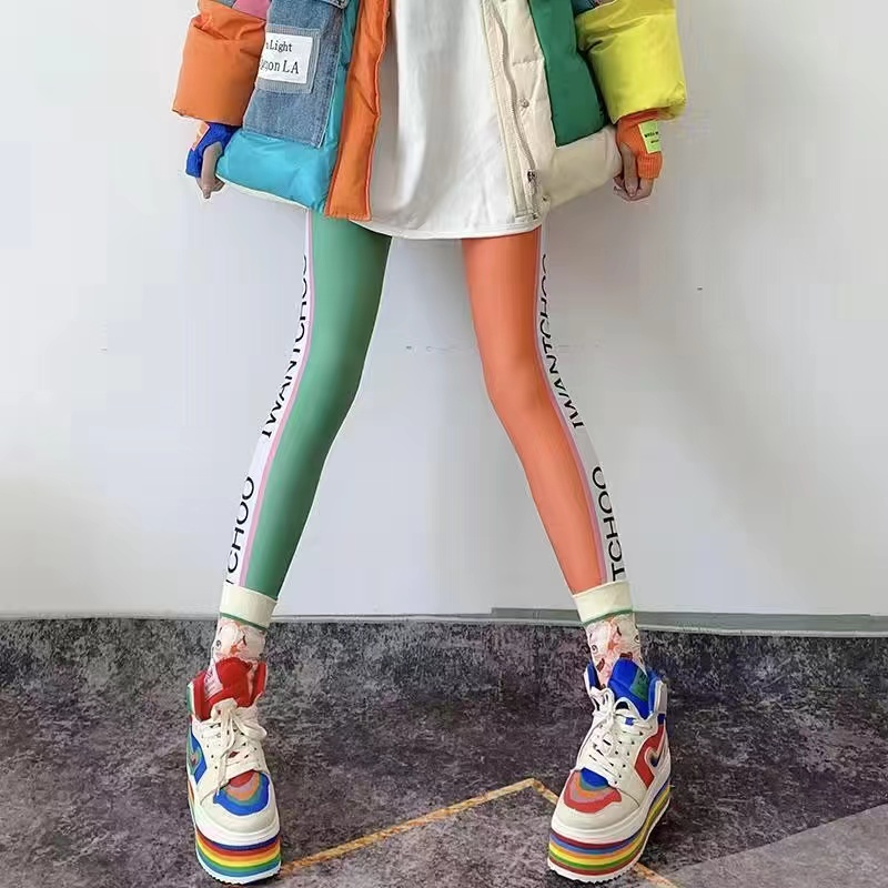 レギンス レディース 派手 春 秋 薄手 サイドライン ハイウエスト プリントレディースファッション ボトムス パンツ