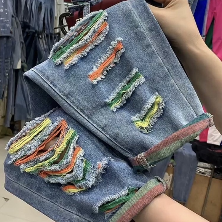 デニムパンツ レディース 春夏 ゆったり レース 可愛い 九分丈 通勤 カジュアル ジーンズ ボトムス S M L XL 2XL SLTB007