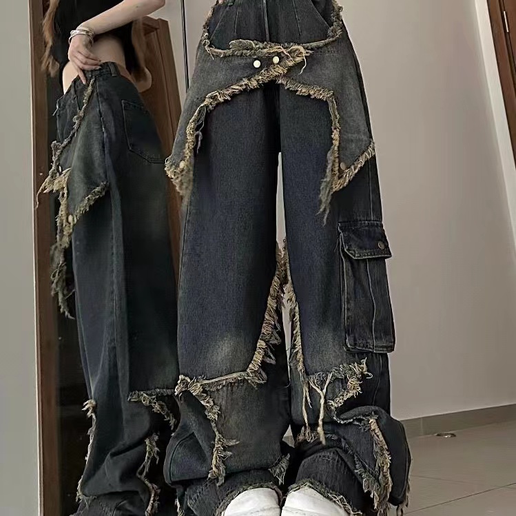 デニムパンツ レディース ダメージ加工 春夏秋 ゆったり カジュアル パンツ 通勤 ワイドパンツレディースファッション ボトムス パンツ