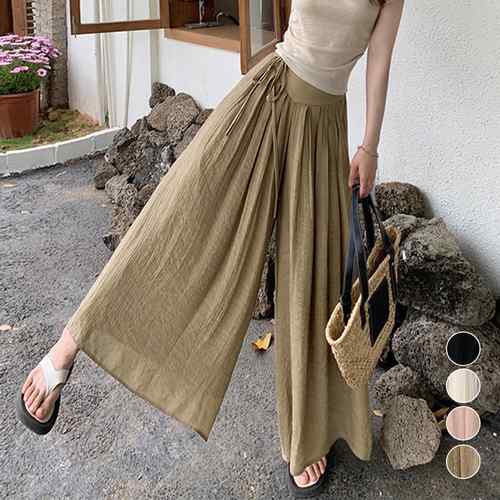 ウエストゴム ゆったり ロングパンツ カジュアル ガウチョパンツ 韓国風 ハイウエスト ワイドガウチョ 薄手 春夏秋 体型カバー パンツ 楽ちん 亜麻パンツ 着やせスカンツ無地