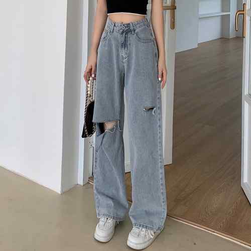ハイウエスト ストレートパンツ 穴あきジーンズ クラッシュ カジュアル ジーパン 体型カバー 脚長美脚パンツ春夏おしゃれ カットデニム 韓国 ゆったり ボトムス デニム ストリート
