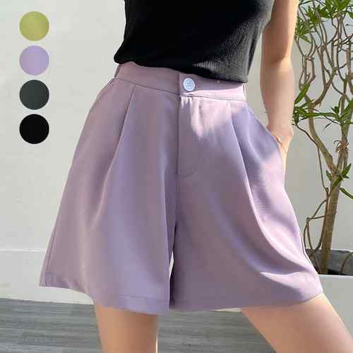 レディースボトムス 韓国風 タック入り カラーパンツ 脚長パンツ 無地ミニボトム 大人 カジュアル おしゃれ 体型カバー イージーショーパン 膝上丈ズボン 新作 人気ゆったり短パン