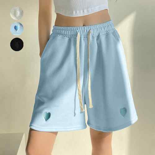 レディースボトムス 韓国 ハート刺しゅう ショーパン ウエストゴム 美脚 可愛い 体型カバー スポーツ ルームウエア 夏 膝上丈ズボン 新作 人気ゆったり短パン 細見えミニパンツ