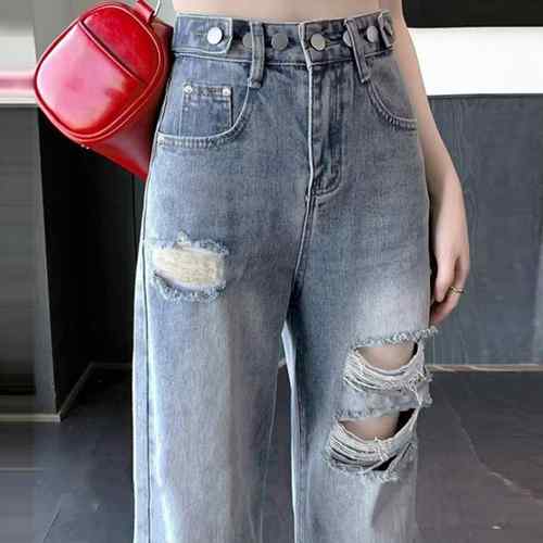 ハイウエスト デニム セミワイドパンツ カジュアル ジーンズ おしゃれ 美脚ジーパン ウォッシュ加工 ストレートデニム夏 ユーズド加工デニム ストリート韓国春秋 アメカジデニム脚長