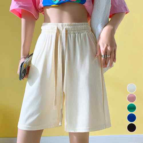 レディースボトムス ハーフパンツ ウエストゴム 紐付き ひざ上ズボン カジュアル ゆったり シンプル カラー短パン 総ゴムショーパン 楽ちんパンツ新作 リラックスパンツ