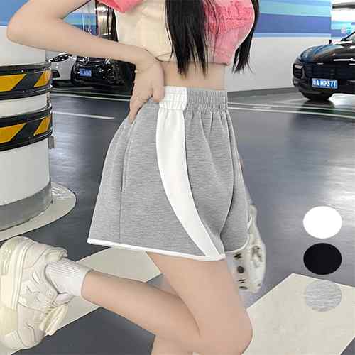 レディース カジュアル ショートワイドパンツ ウエストゴム ゆったり スポーツショーパン バイカラーヨガパンツ 部屋着夏 ミニ丈パンツ運動着 イージーパンツ美脚 ダンス衣装黒短パン